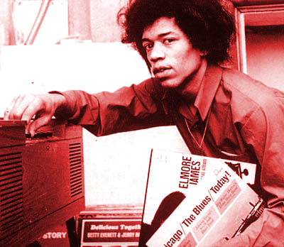 "I was trying to learn how to play like Chuck Berry and Muddy Waters," said Jimi. "I was largely influenced by blues artists when I first started. When I first started playing guitar it was way up in the Northwest, in Seattle, Washington, and they don't have too many of the real blues singers up there. The first guitarist I was aware of was Muddy Waters. I heard one of his old records when I was a little boy and it scared me to death. Wow, what is that all about?"